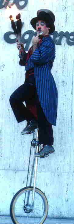 Marvelous Mark BRING A STAR TO YOUR EVENT HE'S HOT ... HE'S REALLY FUNNY... A ONE OF A KIND SPECIALTY ACT One Man Circus COMEDY, UNICYCLE, BALANCING, ACROBATICS, FIRE JUGGLING DANCE, MIME... SLAPSTICK AT IT'S BEST! FOR BAR MITZVAHS, WEDDINGS, CORPORATE EVENTS, ADULT PARTIES - STAGE ACT ON DANCE FLOOR - INCLUDES SIX FOOT HIGH UNICYCLE, FIRE JUGGLING, COMEDY DANCING, STUNTS AND ACROBATICS. LOOK-A-LIKE COMEDY CHARACTERS: CHARLIE CHAPLIN, ALBERT EINSTEIN, MALE DR. RUTH, GROUCH MARX, HARPO, JEWISH GRANDMA, PETER LORRE, ETC. International Champion & Star... Simply the Best!